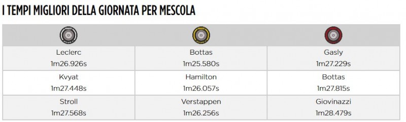 - Valtteri Bottas ha conquistato anche il punto extra per il giro veloce in gara, come da nuovi regolamenti, grazie al tempo di 1m25.580s ottenuto al penultimo giro su medium.