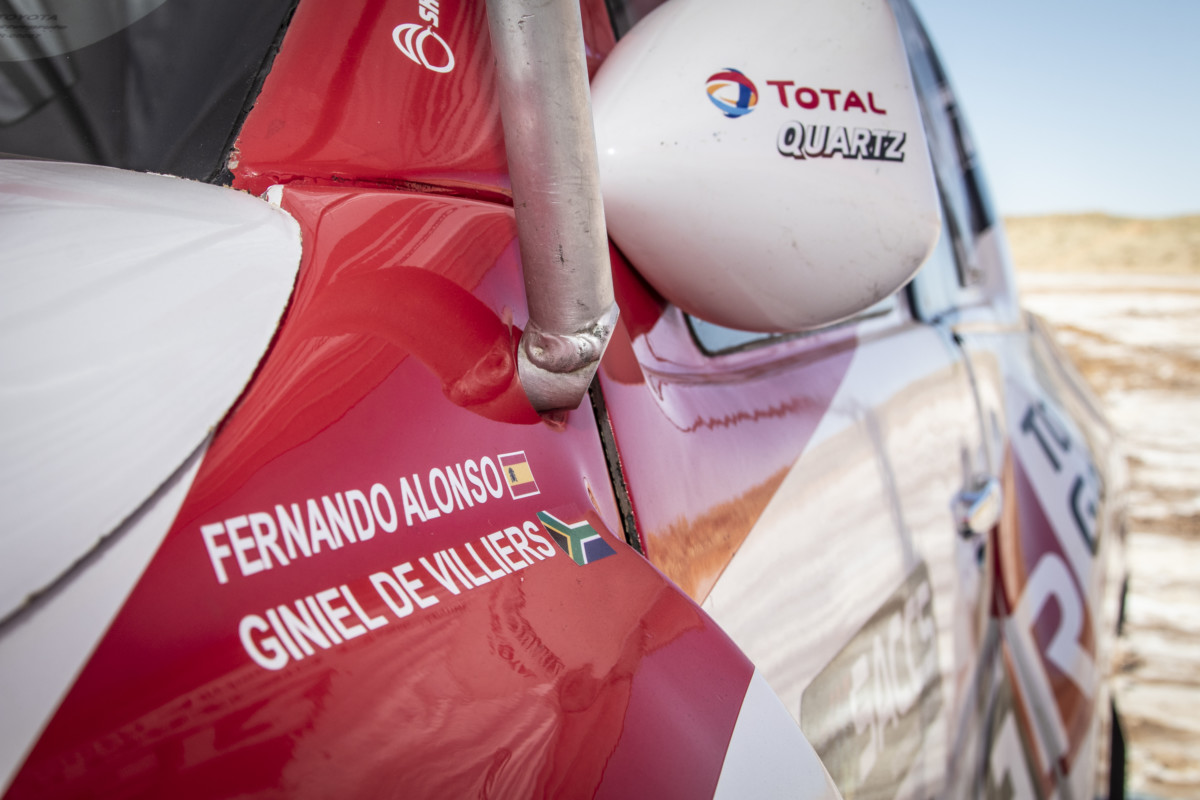 TOYOTA GAZOO Racing South Africa ha organizzato la prova speciale per permettere ad Alonso di avere un primo contatto con il mondo del rally raid e iniziare a considerare possibili opzioni per il futuro. Con Alonso, il pilota ufficiale Toyota Gazoo Racing South Africa, Giniel De Villiers. Il TOYOTA Hilux, che a gennaio ha vinto il Rally Dakar 2019 nelle mani di Nasser Al Attiyah e Mathieu Baumel, è alimentato da un motore V8 da 5 litri, con una potenza di 385 CV e una coppia di 620 Nm. Alonso ha guidato la macchina su due percorsi, il primo da 8 km e il secondo da 17 km nel deserto.