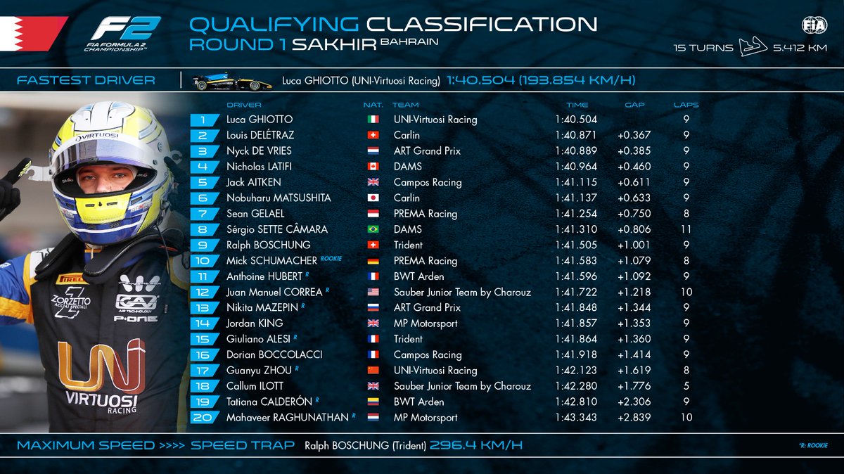 Oltre alla F1, nel fine settimana in Bahrain va in scena la prima tappa della Formula 2 2019. Dieci squadre e venti piloti sono pronti a darsi battaglia dopo un campionato 2018 che ha confermato la validità della serie, grazie alla promozione in Formula 1 dei primi tre classificati, George Russell, Lando Norris e Alexander Albon.