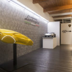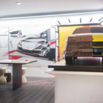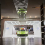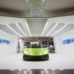 Nel primo ambiente si compie un viaggio multimediale attraverso oltre 50 anni di storia dal 1963 a oggi con i modelli iconici. Gli allestimenti dal luminoso colore bianco fanno da sfondo al verde Selvans dell’Huracán EVO Spyder con interni in pelle e Alcantara. Gli ospiti possono scoprire tutte le straordinarie performance della vettura e in particolare il sistema Lamborghini Dinamica Veicolo Integrata (LDVI) e la nuova connettività attraverso il touchscreen HMI da 8,4”. Nell’area custom Ad Personam Studio, la personalizzazione di ogni singolo dettaglio può essere realizzata virtualmente grazie al Car Configurator.