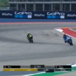Una giornata che interrompe anche il dominio qui ad Austin di Marc Marquez, caduto quando era solidamente al comando. Partito dalla pole, il campione della Honda sembrava volare tranquillo verso la settima vittoria consecutiva in America, con 4 secondi sulla Yamaha di Rossi, quando è scivolato alla curva 12 nel corso del nono dei 20 giri ed è stato costretto al ritiro dopo quello che è parso un incidente davvero insolito. La sua uscita di scena ha consegnato la leadership a Valentino Rossi, inseguito da Rins, ma non è riuscito a staccarlo e a portare a casa una vittoria che manca da Assen 2017. Il pilota Suzuki è stato sempre lì, fino a infilarlo nel giro 17 alla curva 7 in discesa.