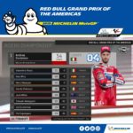 La giornata da dimenticare della Honda è stata completata da un incidente nelle prime fasi di Cal Crutchlow alla cuva 11, quando era terzo, e da un cedimento meccanico per Jorge Lorenzo. Un’altra gara no per Vinales, che per partenza anticipata ha dovuto scontare un ride-through chiudendo 11° davanti ad Andrea Iannone e Johann Zarco. Penalità per la stessa infrazione per il compagno di squadra di Rins, Joan Mir, 17°. Incidente per la Aprilia di Aleix Espargaro nel secondo giro, unico ritiro non-Honda della gara.