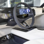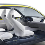 La purezza dell’abitacolo emerge anche nell’intelligente posizionamento delle bocchette di ventilazione, nascoste dietro gli schermi, che permettono così di avere superfici totalmente pure e pulite, mentre il volante è stato semplificato e il modulo centrale riprende la forma del Vizor. Il leggendario logo del fulmine è ora il punto centrale, più che in passato, per cui il Blitz OPEL con LED al centro resta immobile qualunque sia la posizione del volante, proprio come avviene sulle ruote. Questo approccio pulito e hi-tech caratterizza l’intero abitacolo. Per esempio, i sedili sembrano sospesi e gli altoparlanti, integrati sotto i poggiatesta, si possono asportare per ascoltare la musica anche quando non si è a bordo della vettura.