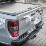 I parafanghi anteriori svasati sono stati progettati per meglio gestire i danni derivanti dall’utilizzo in fuoristrada e consentire una maggiore durata delle sospensioni e degli pneumatici di grandi dimensioni. Le pedane laterali sono elaborate specificamente per evitare che gli schizzi di fango colpiscano la parte posteriore del pick-up oltre a rappresentare punti di scarico per sabbia, fango e neve. Il Ranger Raptor rimane un vero performer dell’estremo. Il paraurti posteriore, modificato, presenta un gancio di traino integrato con una portata di 2.500 kg. Due ganci di recupero anteriori sono in grado di reggere fino a 4.635 kg mentre i due posteriori hanno una portata di 3.863 kg. Il piano di carico misura 1.560 mm per 1.575 mm. Per un accesso più comodo il Lift Assist Tailgate con nuove barre di torsione, riduce del 66% la forza necessaria per chiuderlo.
