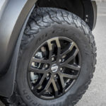 I pneumatici BF Goodrich 285/70 R17, adatti a tutti gli scenari stradali, sono stati sviluppati appositamente per il Ranger Raptor. Con un diametro di 838 mm e una larghezza di 285 mm, il design della spalla è stato ottimizzato, per affrontare le condizioni di guida più estreme sempre in sicurezza, mentre quello del battistrada è stato realizzato per meglio adattarsi al fuoristrada, e garantire un’aderenza perfetta anche in presenza di asfalto bagnato, fango, sabbia e neve.