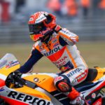 Marc Marquez detta il passo in qualifica nel GP di Francia a Le Mans, scommette subito sulle gomme da pioggia, spinge al massimo, segna il tempo che sarà quello definitivo, ma cade alla curva 6. La caduta non lo separa però dall’ennesima pole, la terza stagionale e la numero 55 in MotoGP, che lo porta alla pari di Valentino Rossi.