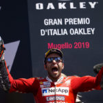 Una domenica da incorniciare al Mugello per il team Ducati, con Danilo Petrucci vincitore del GP d’Italia – la sua prima affermazione in MotoGP – in volata davanti a Marquez e al compagno di squadra Andrea Dovizioso, terzo a soli 3 decimi. Per Ducati si tratta della terza vittoria consecutiva nel GP di casa dopo quelle di Dovizioso (2017) e Lorenzo (2018), un risultato straordinario e celebrato insieme ai numerosi tifosi che hanno affollato la Tribuna Ducati. Partito dalla prima fila in terza posizione, Petrucci si è inserito subito nel gruppo di testa insieme a Dovizioso, protagonista di un’ottima partenza dalla terza fila e già terzo alla prima curva. Entrambi sono poi stati protagonisti di numerosi sorpassi e controsorpassi e sul finale, con solo quattro piloti rimasti a giocarsi la vittoria, Petrucci ha difeso a più riprese la prima posizione, precedendo Márquez per soli 43 millesimi sotto la bandiera a scacchi, con Dovizioso terzo in scia. Settimo posto in rimonta per la wild-card Michele Pirro, che nonostante un problema all’avambraccio ha recuperato diverse posizioni nella seconda metà di gara.