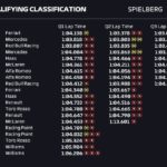 Il miglior tempo nelle qualifiche del GP d’Austria è di Charles Leclerc, che ha conquistato la seconda pole in carriera dopo una prestazione perfetta, una soddisfazione che attenua la delusione Ferrari per il problema meccanico che ha impedito a Sebastian Vettel di fare un tempo nel Q3. Leclerc ha fermato i cronometri sull’1.03.003s, nuovo record al Red Bull Ring, precedendo di 0.259s la Mercedes di Hamilton, la cui posizione è però in sospeso per un’investigazione per aver ostacolato Kimi Raikkonen nel Q1. Terzo tempo per la Red Bull del vincitore 2018 Max Verstappen, a 0.436s dal leader, a completare quella che è una prima assoluta quest’anno, tre team nelle prime tre posizioni il sabato nell’ora ufficiale.