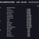 A Hockenheim abbiamo rivisto il Vettel quattro volte campione, secondo dopo aver recuperato 7 posizioni negliultimi 15 giri, dopo essere partito ultimo per il problema al turbo in qualifica. Sul podio un incredulo ed emozionato Daniil Kvyat, che ha festeggiato nel migliore dei modi l’arrivo della sua bimba, nata ieri. Un risultato che porta punti importanti in ottica campionato alla Toro Rosso. Quarto Lance Stroll, che è stato anche brevemente in testa alla gara nello stint finale, dopo la scommessa della Racing Point di montargli le slick. Il canadese ha lottato finché ha potuto, cedendo poi a Kvyat e a Vettel. Alle sue spalle la McLaren di Carlos Sainz, la Toro Rosso di Alexander Albon, sopravvissuto a un contatto con Pierre Gasly all’ultimo giro, i due piloti Alfa Romeo Racing Kimi Raikkonen e Antonio Giovinazzi, con le Haas di Romain Grosjean e Kevin Magnussen a chiudere la top 10, nonostante un contatto ruota a ruota nelle fasi finali.