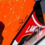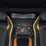 Sulla carrozzeria, così come in calce a ogni tela d’autore, compare la firma di Skyler Grey accompagnata dall’inconfondibile logo della saetta sopra il nome, a riconferma dell’autenticità e unicità di questa opera d’arte. Gli interni, in pelle Nero Ade con cuciture a contrasto arancioni, sono personalizzati attraverso un ricamo sul pannello posteriore dell’immagine di un toro in versione fumetto in carica tra macchie di vernice colorate a effetto splash. Il disegno del toro dell’artista è stato affidato all’arte del ricamo delle specialiste della selleria Lamborghini. L’Aventador S by Skyler Grey, acquistata da un collezionista d’arte, sarà la prima Lamborghini a essere certificata attraverso l’innovativa tecnologia Blockchain.