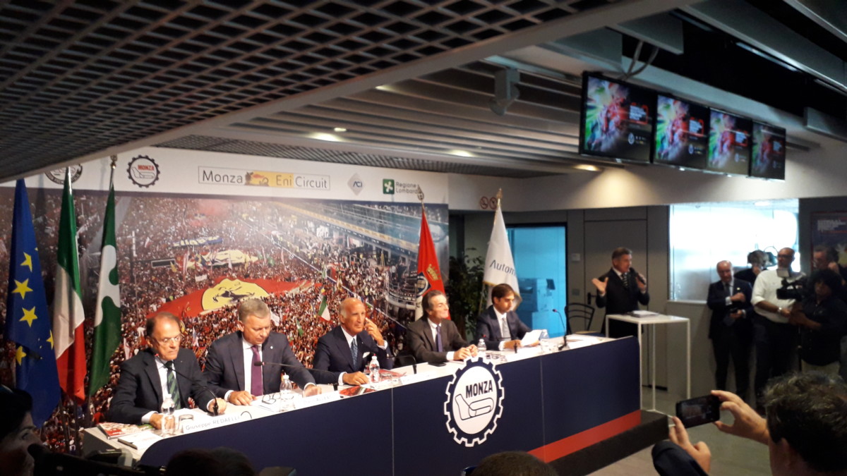 La sala stampa Tazio Nuvolari ha accolto come da tradizione la presentazione del GP d’Italia, che in questo 2019 sarà ancora più speciale, visto che compie 90 anni. A fare gli onori di casa, i Presidenti ACI Angelo Sticchi Damiani, di Regione Lombardia Attilio Fontana, di Automobile Club Milano Geronimo La Russa, di Autodromo Nazionale Monza SIAS S.p.A. Giuseppe Redaelli e il sindaco di Monza Dario Allevi. Quello che si correrà domenica sarà il 90° GP d’Italia che dal 1922 – a eccezione di 5 edizioni – si è sempre corso qui. Molte le iniziative per gli appassionati nel corso dell’intera settimana, a partire da mercoledì 4 settembre quando ACI e Ferrari – che festeggia i 90 anni dalla sua fondazione – regaleranno un pomeriggio indimenticabile in Piazza Duomo a Milano.