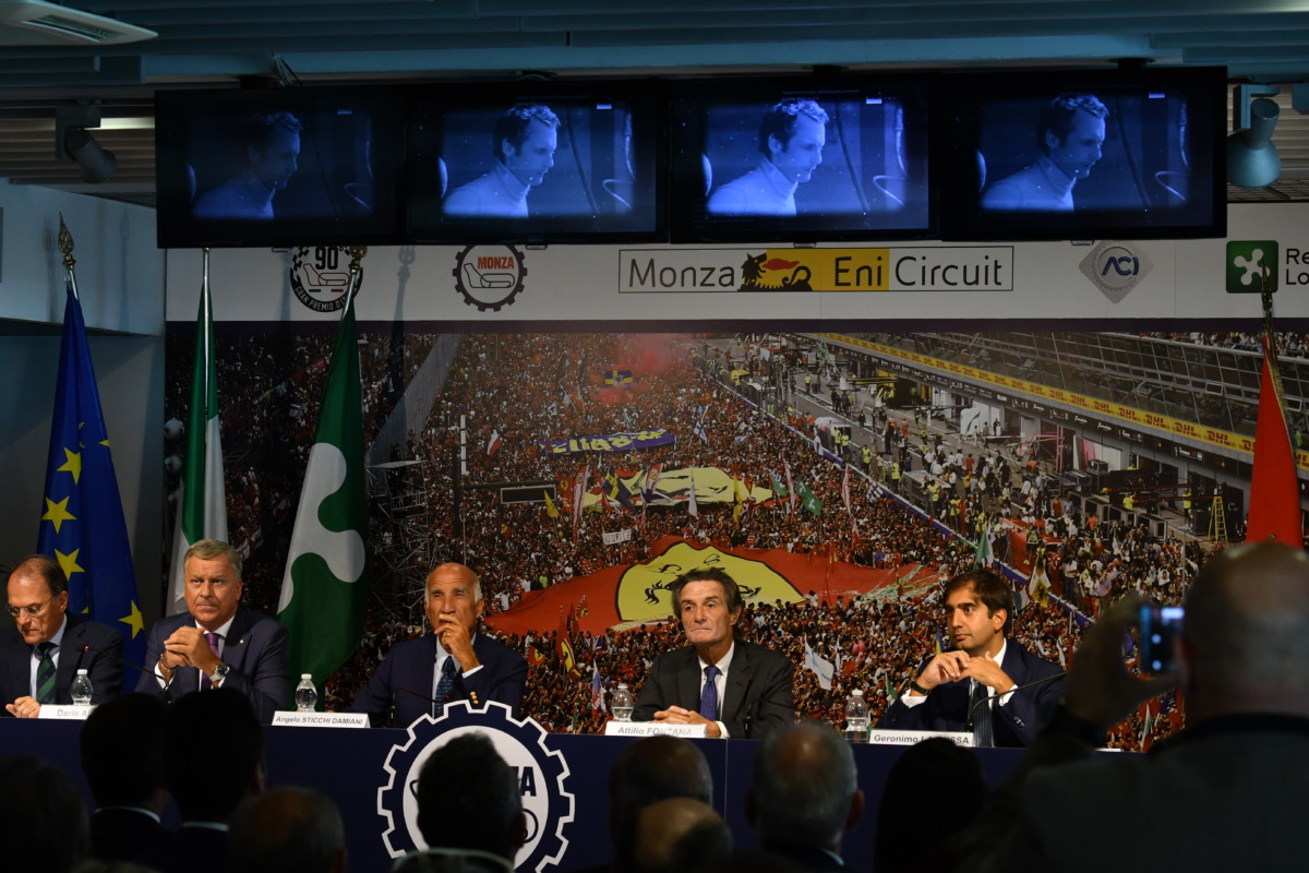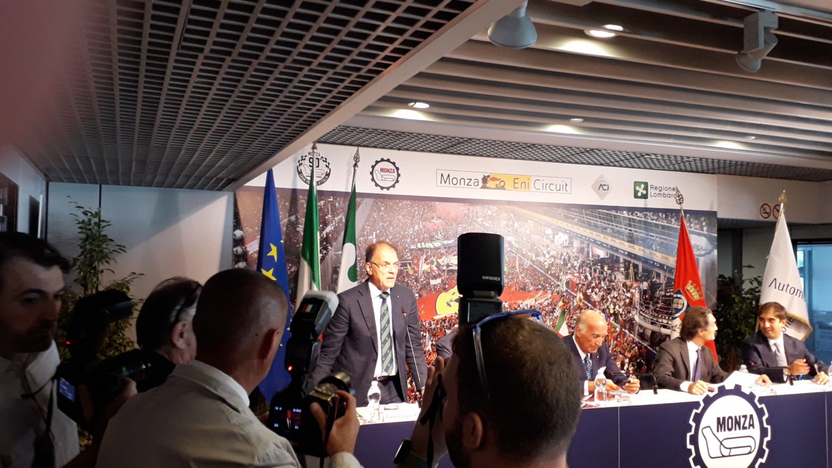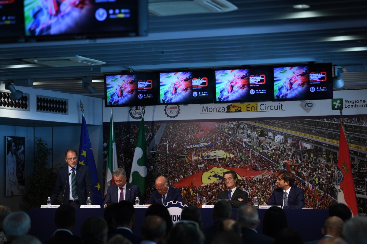 “Il mio intervento inizia citando le parole pronunciate da Arturo Mercanti all’inaugurazione del nostro Autodromo“, ha detto Giuseppe Redaelli. “‘La velocità ha creato la corsa. (…) Le corse di velocità, hanno d’altra parte raccolto la grande passione del pubblico, il quale vive dello spettacolo della lotta e della realtà che confina con la fantasia e con l’irrealizzabile, e ha bisogno di una fede per appagare la sua brama e la sua passione: la fede cioè che ciò che egli vede come privilegio di eletti diventi col tempo dominio di tutti; e quindi anche suo. La passione per le corse di velocità pura si consolidava con la costruzione di autodromi’. Le faccio mie, in occasione del 90° GP d’Italia per manifestare la nostra gratitudine all’Automobile Club Milano che nel 1922, con grande lungimiranza, ha regalato all’Italia questo meraviglioso gioiello e ad Automobile Club d’Italia per essersi assunto l’impegno di trattare per garantire la continuità del Gran Premio d’Italia. Il Tempio della Velocità, procurando attraverso l’indotto ricadute economiche molto rilevanti su un territorio già ricco di capacità imprenditoriale, ha negli anni, e con crescente successo, diffuso nel mondo la notorietà di questa prolifica regione. L’outline del circuito è oggi una caratteristica del territorio monzese: è un simbolo vincente, ammirato e comprensibilmente invidiato. Per queste ragioni, in SIAS ci sentiamo tutti sempre più motivati a profondere il massimo impegno nel lavoro quotidiano al fianco delle Istituzioni e di tutti gli appassionati per rendere indimenticabile il weekend di gara che ci aspetta“.
