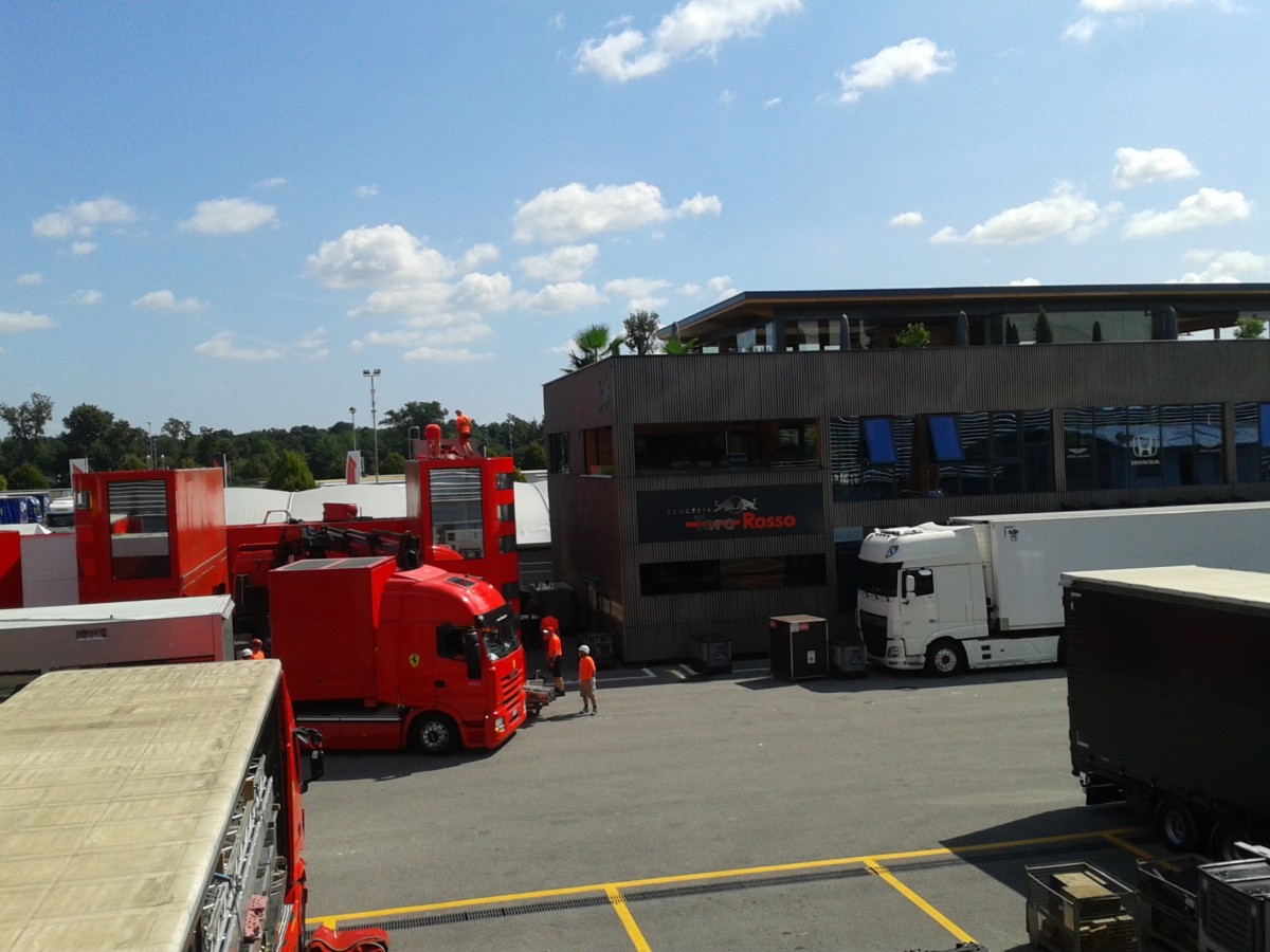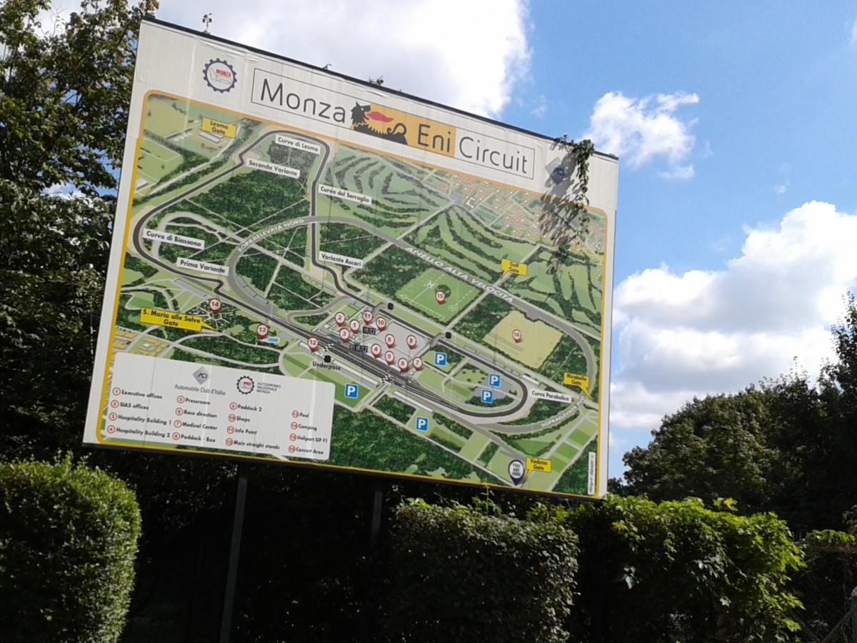 A proposito di rifacimenti, avremmo una richiesta: si potrebbe rifare un ingresso degno di questo nome? Quanto era bello quello che abbiamo visto per tanti anni… nulla di speciale, ma ti salutava quando entravi e uscivi. Adesso, due bandierine pietose della F1, oggi per di più ammosciate, vista la mancanza di vento. Fate qualcosa, please! In fondo è il biglietto da visita per chi arriva e non costerà poi una fortuna…