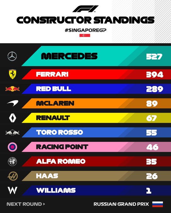 Singapore ci ha regalato un weekend caratterizzato da diverse sorprese, a partire dalla pole di Leclerc, proseguendo con la doppietta targata Ferrari col primo successo stagionale di Vettel e la Mercedes fuori dal podio, che chiude in quarta e quinta posizione alle spalle di Verstappen. Un fine settimana che darà morale sia ai piloti sia a tutta la Ferrari, rinata dopo una stagione iniziata in caduta libera. Dopo le vittorie di Spa e Monza, era il GP della verità e le risposte ci sono state. Tutte le novità portate hanno funzionato perfettamente riducendo il gap coi diretti avversari, riuscendo a cogliere il miglior risultato possibile su una pista che non doveva essere favorevole.