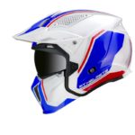 da importante novità di MT HELMETS, un nuovo casco jet convertibile molto particolare e innovativo, che richiama nello stile i caschi del passato utilizzati dal mondo del fuoristrada. Tra le caratteristiche principali di questo modello, che lo rendono molto accattivante e davvero versatile nel mondo delle due ruote, la mentoniera removibile e il supporto integrato per il montaggio della sport-camera. Realizzato con calotta esterna in H.I.R.P. (High Impact Resistant Polymer) (mescola esclusiva MT), composta da polimeri che la rendono estremamente leggera e resistente agli urti. Due le misure, la SMALL include le taglie dalla XS alla M, la LARGE quelle dalla L alla XXL. La calotta interna, anch’essa in due misure, è realizzata in EPS a densità differenziata La visiera a sgancio rapido è antigraffio e anti-UV. STREETFIGHTER è dotato di visierina parasole interna, per una migliore visibilità in condizioni di guida soleggiate.