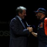 Emozioni in sala poi per alcuni premi speciali, a partire da quello assegnato al Team Manager Claudio De Carli (e condiviso con tutto il team) per il 12° titolo mondiale conquistato, seguito da quello andato ad una leggenda come Michele Rinaldi, che ha ricevuto un premio alla carriera. Tra gli ospiti, presenti anche il CEO FIM Tony Skillington e Claudio Pedrazzini (membro Coni Lombardia). Tanti i piloti premiati, tra i quali il giovane Mattia Guadagnini, Campione del Mondo ed Europeo MX 125. Accanto a lui, tutti i protagonisti 2019 di discipline quali Supermarecross, Motocross con i suoi vari campionati (Senior, Femminile, Junior, Italiano e Italiano Prestige) nonché di competizioni internazionali quali, appunto, gli Internazionali d’Italia, l’Europeo e il Mondiale (con i titoli in MX Junior 85 e 125 rispettivamente di Valerio Lata e Mattia Guadagnini). Senza dimenticare le varie prestazioni di squadra della Maglia Azzurra Motocross, con il trionfo al Trofeo delle Nazioni Europee (con Lata, Russi, Roncoli e Lesiardo) e quello al Mondiale Junior a squadre (con Martinelli, Lata e Guadagnini) entrambi sotto la guida del C.T. Thomas Traversini, oltre al podio ottenuto nel Supermoto delle Nazioni da D’Addato, Monticelli e Sammartin con CT Massimo Beltrami.
