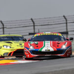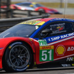 GTE Pro. Nelle prime fasi di gara Calado si portava in terza posizione dopo un bel duello con le Porsche e gestiva al meglio le gomme, effettuando solo il cambio degli pneumatici di sinistra durante la sua prima sosta. Il pit stop era velocissimo ed il pilota inglese era in grado di affiancare la Porsche numero 92 in corsia box ma la vettura tedesca sarebbe stata penalizzata, di lì a poco, per unsafe release con 10” da scontare alla sosta successiva. Davide Rigon, in quinta posizione, adottava una strategia analoga e, come il compagno, sostituiva solo le coperture del lato sinistro ma, rispetto a Calado, anticipava il cambio pilota e il full service di un paio di passaggi. Nella seconda parte di gara erano pertanto Pier Guidi e Molina al volante delle due 488 GTE di AF Corse. La svolta avveniva in prossimità del 90simo giro quando l’Aston Martin in testa alla corsa era vittima di una foratura che provocava lo spargimento di detriti lungo il tracciato e la conseguente fase di Full Course Yellow. Dell’episodio approfittava Pier Guidi per portarsi al comando ed effettuare in questo frangente il pit stop, imitato da Molina che nel frattempo occupava la sesta posizione. Una volta ripresa la corsa, il pilota italiano poteva contare su un margine di oltre 15 secondi sul primo degli inseguitori. Il vincitore della 24 ore di Le Mans gestiva autorevolmente il suo vantaggio, controllando il degrado delle gomme e il tentativo di rimonta delle due Porsche alle sue spalle, fino alla bandiera a scacchi sotto la quale transitava per primo. Miguel Molina, pur recuperando nel finale parte del distacco accumulato, si doveva invece accontentare del sesto posto finale.
