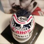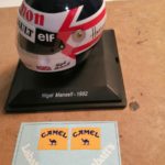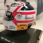 Il casco che trovate in edicola è proprio quello della stagione 1992 di Nigel. Prodotto da Spark in scala 1:5, è apprezzabile il fatto che si possano trovare le decals dei brand di birra e di sigarette. Purtroppo c’è un difetto comune a tutte le uscite: le decals del marchio di birra, che dovrebbero seguire la forma della calotta, sono state prodotte male e diritte. Il consiglio che mi sento di dare è quello di staccare le scritte e dividerle separatamente in tre, in modo di ridurre al minimo il difetto della decals errata. Inoltre la decal superiore bianca e rossa della calotta non è posizionata bene. Un vero peccato per uno dei caschi più iconici della F1. Il modello comunque merita l’acquisto e lo potete trovare in edicola nella serie edita da Centauria “Caschi dei più grandi piloti di sempre”.