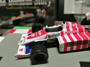 Abbiamo infatti già visto l’azienda italiana sulla monoposto del team di Frank Williams quando, a fine stagione 1975, nel GP degli USA, era sponsor personale di Lella Lombardi. Lella infatti era legata al marchio Lavazza, tanto che nel 1975 e nell’unica gara che fece nel 1976 per il marchio inglese March, il team era iscritto come Lavazza March. Nel 1975, con la March 751, al GP di Spagna al Montjuich la nostra Lella ottenne mezzo punto. La prima volta che una donna andò a punti nel campionato del mondo di F1… e finora anche l’unica. Lavazza è in bella vista sulla bianca e rossa monoposto inglese nel riconoscibile e caratteristico musone avvolgente anteriore, nell’altissimo airscoop e nell’alettone posteriore. Nell’ultima gara dell’anno, Lella, passò proprio alla Williams. Per lei fu l’unica uscita con il team inglese nel mondiale di F1. Un weekend sfortunato in quanto non riuscì a prendere il via del gran premio dopo un guasto alla monoposto nel warm-up. Il binomio Lavazza-Lombardi continuò anche nel 1976, alla March prima e alla Brabham gestita dalla Ram Racing poi, con il GP d’Austria del 1976 che fu l’ultimo per la nostra italiana.
