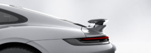 Per lo spoiler posteriore è stata utilizzata una struttura leggera: questo elemento tipico della Turbo pesa 440 grammi meno del componente corrispondente montato sul modello precedente, ma vanta un’area effettiva maggiore dell’8%. La base dell’ala è costituita da un nucleo in materiale espanso con inserti forgiati. La struttura consta di un lato superiore formato da due strati di plastica rinforzata con fibra di carbonio (tessuto biassiale CFRP) e di un lato inferiore costituito da uno strato di plastica rinforzata con fibra di vetro (tessuto triassiale GFRP). La regolazione elettrica dell’alettone – che può essere esteso e inclinato – avviene principalmente in base alla velocità e alla modalità di guida selezionata.