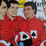 Michel Vaillant è il mito di tutti noi appassionati di motori. E’ il pilota per eccellenza che vive, corre e affronta tutta la storia del motorsport. Le matite di Jean Graton sono arte pura. Michele ha avuto l’onore di essere fianco a fianco di Michel. In un fumetto di base molto nazionalistico dove, piloti francesi e francofoni a parte, venivi disegnato solo se eri un grande campione. E’ un dettaglio non di poco conto.