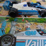 La F1-1982 ha la scocca rinforzata con pannelli honeycomb, il musetto anteriore è molto simile a quello della McLaren Mp4/1 con la carenatura delle sospensioni simile a quelle della ATS D5. I cassoni laterali che devono creare l’effetto suolo sono come quelli della Tyrrell 011, mentre verso la rastrematura del cofano motore troviamo due prese d’aria in stile Ferrari 126C2. L’alettone posteriore ha un grosso pilone centrale con paratie laterali integrate alla carrozzeria. Graton si ispira al mondo reale ma inventa. In questa gara Michel Vaillant battaglierà contro Alain Prost, ma vediamo ritratti anche de Cesaris, Tambay, Cheever, Arnoux, Watson, Pironi e Niki Lauda. In questo lungo viaggio scopriremo tutte le monoposto dei team Vaillant e Leader dal 1957 a oggi. Ci scriviamo alla prossima.