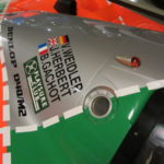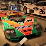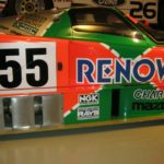 Lo sponsor principale della Mazda era la ditta Renown, azienda di abbigliamento giapponese. Gli iconici colori sgargianti arancio e verdi sono della Renown stessa e non della Mazda, come magari si potrebbe pensare. E tutte quelle piccole strisce bianche? Beh, che ci crediate o no, il signore al museo mi spiegò che simulavano il filo di cucitura dei calzini che era prodotto molto popolare di Renown a inizio anni 90. Inoltre, un dettaglio molto particolare che non si vede in TV o dalle foto è che tutte quelle strisce bianche, viste da vicino, sono pezzi di nastro bianco tagliato uno diverso dall’altro. Un lavoro manuale e artigianale incredibile.
