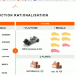 - in America Latina, le piattaforme del segmento B saranno razionalizzate, evolvendo da quattro varianti a una sola, sia per i prodotti Renault che Nissan. Questa piattaforma sarà prodotta in due stabilimenti che produrranno sia per Renault che per Nissan;