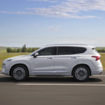 Il carattere di Nuova Santa Fe è sottolineato da rivestimenti dei passaruota più ampi e da nuovi cerchi in lega, inclusa un’opzione da 20’’. Al posteriore, il nuovo design dei gruppi ottici che si estendono orizzontalmente enfatizzano la larghezza del modello, con una banda rossa riflettente che unisce i corpi luminosi. Per armonizzare e rifinire la vista posteriore i designer hanno modellato la fascia del paraurti con l’obiettivo di ottenere linee distese e più sofisticate. Grazie al suo design esterno, Nuova Hyundai Santa Fe dimostra maturità e sicurezza riflettendo le qualità premium di Hyundai. Per la prima volta su una vettura Hyundai, Nuova Santa Fe è disponibile con un Luxury Package opzionale per aggiungere sensazioni di ancora più elevata qualità. L’allestimento include cerchi in lega da 20’’ con design dedicato e dettagli esterni in tinta con la carrozzeria.