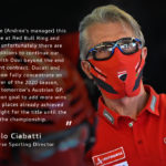 Luigi Dall’Igna (Direttore Generale di Ducati Corse): “Dopo un inizio di campionato così difficile, questa vittoria ha sicuramente un peso importante. È stata una gara un po’ particolare vista l’interruzione. Dovi ha dimostrato di essere forte e che la nostra moto è competitiva. Dopo la ripartenza la situazione in pista è cambiata, ma abbiamo riconfermato alcuni aspetti e cambiato la gomma anteriore. Voglio fare i complimenti a Dovi e a tutta la squadra per il lavoro fatto questo fine settimana. Spero che riusciremo a essere così competitivi anche nelle prossime gare fino alla fine della stagione”.