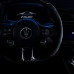 Entrando nell’abitacolo, al centro viene sempre posto il conducente e nulla deve distrarre dall’esperienza di guida sportiva. Ogni componente ha uno scopo ed è pensato per il guidatore. Forme semplici, pochi spigoli vivi e poche distrazioni. Due gli schermi, da 10 pollici: uno per il cockpit, l’altro per il Maserati Touch Control Plus (MTC Plus MIA). Nel tunnel centrale, coperto di fibra di carbonio, è di rigore la semplicità con pochi elementi: il caricabatteria wireless per smartphone, il selettore di modalità di guida (GT, Wet, Sport, Corsa e un quinto ESC Off che disattiva i controlli), due pulsanti per le marce, gli alzacristalli, il comando del volume dell’infotainment e sotto il bracciolo compare un vano porta oggetti. Tutti gli altri comandi sono sul volante, con il tasto riservato all’accensione a sinistra e il launch control a destra.