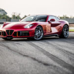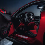 L’esterno di Touring AERO 3 riprende il colore di DV #1: Rosso Stratosfera. La forte personalità dell’esterno è mitigata all’interno dell’abitacolo, dove il rosso sottolinea alcuni dettagli mentre il nero gioca con il carbonio opaco e l’alluminio nero lucido e opaco. Per la carrozzeria di AERO 3 Touring Superleggera ha scelto il carbonio. Spessori e orientamento delle fibre sono studiati per il miglior rapporto peso/rigidità, in fase preparatoria è stato studiato l’uso ottimale dei materiali in termini di peso, resistenza, aspetto superficiale e qualità, inclusa la facilità di riparazione in caso di incidente. Per la massima precisione e qualità, ogni elemento in CFRP è prodotto per infusione sottovuoto a 120°.