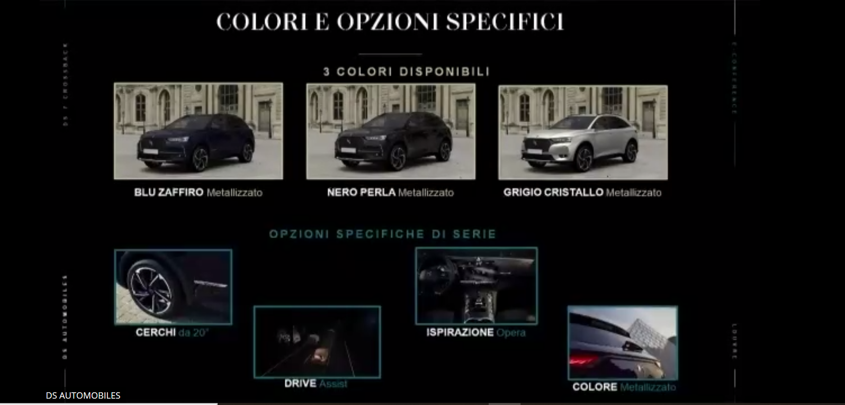 DS 7 CROSSBACK LOUVRE è disponibile in tre diverse colorazioni : Blu Zaffiro, Grigio Cristallo, Nero Perla. L’edizione limitata DS 7 CROSSBACK LOUVRE è commercializzata in 18 Paesi situati su diverse regioni, in Europa, Africa, America Latina e Asia. DS 7 CROSSBCAK LOUVRE è ordinabile da subito e sarà disponibile nella rete dei DS Store italiani da novembre con prezzi di listino a partire da 60.700 €. Terminata la presentazione, il sogno continua… sarebbe davvero bello provare la DS 7 CROSSBACK LOUVRE sulle strade di Parigi e concludere la giornata ovviamente con una visita al museo per eccellenza. E chissà che presto tutto questo non diventi realtà!