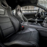 Gli interni sono caratterizzati da una combinazione di colori Ebony e dettagli in alluminio tornito Dark Engine, mentre i sedili sportivi in pelle presentano dettagli a contrasto color arancione. Ogni Mustang Mach 1 presenta un esclusivo badge sul cruscotto con il logo Mach 1, abbinati a esclusivi battitacco e un nuovo display di avvio sul quadro strumenti digitale da 12’’. Le tecnologie dedicate al comfort e praticità includono sedili anteriori climatizzati, sistema di connettività SYNC 3 con touchscreen e navigation system, audio premium B&O da 12 diffusori e modem FordPass Connect integrato per una connettività ottimale.