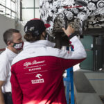 Giovinazzi ha fornito indicazioni sull’assetto della vettura, prestando particolare attenzione anche alle nuove componenti in fibra di carbonio e alla nuova soluzione tecnica adottata per i mozzi monodado, accoppiati in questo caso a cerchi prototipali il cui stile definitivo ricalcherà il 5 fori classico Alfa Romeo, come già visto sulla GTAm concept. Per Giovinazzi, una grande giornata: “È stato bello vedere il miglioramento che abbiamo apportato oggi sulla vettura”. Raikkonen, invece, ha lavorato con il reparto aerodinamico sulle nuove appendici introdotte sia all’anteriore, con il nuovo splitter regolabile integrato nel nuovo paraurti anteriore, sia al posteriore, con l’introduzione della nuova ala regolabile manualmente, e in generale sul bilanciamento complessivo fornito dall’interazione di queste all’estrattore e alla carenatura sottoscocca. Il risultato? “Le reputo il mix perfetto per un utilizzo quotidiano e in pista”, ha dichiarato Kimi.