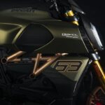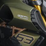 La livrea del Diavel 1260 Lamborghini è frutto del lavoro congiunto tra il Centro Stile Ducati e il Centro Stile Lamborghini. Le vernici applicate alla moto sono infatti esattamente le stesse utilizzate per la Sián FKP 37, con la carrozzeria che si caratterizza per la colorazione Verde Gea, mentre il telaio, la vasca sottocoda e gli stessi cerchi forgiati sono evidenziati dall’uso dell’Oro Electrum. Importanti elementi identificativi del design Lamborghini sono l’esagono e lo stilema “Y“. Questa versione speciale del Diavel omaggia il primo nella forma dello scarico ed il secondo grazie ai dettagli estetici realizzati sulla sella. Infine, la livrea si caratterizza per la presenza del numero 63, un numero importante per la Casa di Sant’Agata Bolognese, fondata proprio nel 1963. Moltiplicando per dieci questo numero, si ottengono i 630 esemplari numerati che Ducati produrrà e che saranno disponibili nei concessionari della rete Ducati a partire da fine dicembre 2020.