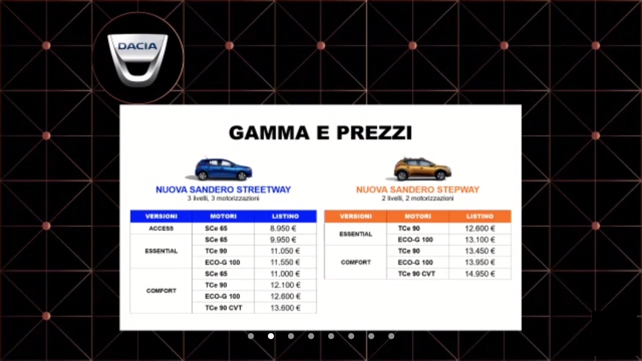 La storia Dacia è iniziata nel 2006 con una vettura estremamente razionale, la Logan, che svolgeva perfettamente la sua funzione a un prezzo incredibile. Oggi Dacia propone le nuove Sandero Streetway e Stepway che conquistano grazie al loro look contemporaneo e al piacere di guida.