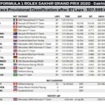Ma Sakhir premia anche Esteban Ocon che, dopo il difficile ritorno in F1, ha conquistato il suo primo podio, seguito da Stroll, che bissa il terzo posto di Monza riuscendo a tenere a bada la McLaren di Carlos Sainz, con Daniel Ricciardo 5°. Sesta l’unica Red Bull in corsa, quella di Alex Albon, davanti all’AlphaTauri di Daniil Kvyat, alle Mercedes di Bottas e Russell e alla McLaren di Lando Norris.
