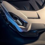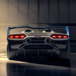 La carrozzeria in fibra di carbonio è progettata dagli aerodinamici Lamborghini e lisciata a mano per convogliare i flussi d’aria in modo ottimale, consentendo una guida confortevole anche alle alte velocità. Il pronunciato splitter anteriore è incorniciato da due pinne e le prese d’aria sul cofano anteriore sono ispirate a quelle della Huracán GT3 Evo, mentre le fiancate scolpite riprendono le soluzioni adottate sulla Essenza SCV12. Il posteriore muscoloso è sormontato da una grande ala in carbonio regolabile in tre posizioni: Basso, Medio e Alto Carico.