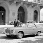 Mercedes-Benz 220 SE Coupé (W 111): nel 1961, una delle coupé più eleganti della storia del Marchio fu esposta sul Lago di Ginevra. Questo esclusivo e lussuoso modello a due porte – insieme alla versione presentata nell’autunno dello stesso anno – è stato poi costruito per undici anni, e proposto in una gamma di diverse varianti di motore e trasmissione. Tecnicamente, la 220 SE Coupé era basata sulla berlina ‘tail fin’ e, come quest’ultima, era stata assegnata la sigla W 111. L’assemblaggio del pavimento invariato offriva molto spazio per quattro posti e un grande bagagliaio. Tuttavia, il corpo della coupé era di 80 millimetri più basso di quello della berlina, quindi solo la griglia del radiatore e i gruppi ottici anteriori potevano essere trasferiti. Il motore a sei cilindri sviluppa 88 kW (120 CV) da una cilindrata di 2,2 litri. Coupé e Cabriolet sono ancora oggi modelli ambiti: le versioni successive con motori V8, in particolare, sono tra i classici Mercedes-Benz più ricercati.