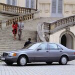 Classe S nella serie 140: introdotta nel 1991, questa prestigiosa berlina di lusso vantava numerose innovazioni, dalla sicurezza e comfort alla sostenibilità. Il comfort di marcia, per esempio, era stato notevolmente migliorato rispetto alla precedente serie 126. Con la 600 SE e la 600 SEL, il primo dodici cilindri della Stella su una vettura di serie ha segnato un picco nelle prestazioni con ben 300 kW (408 CV). Con il restyling del 1995, la serie 140 è stata la prima vettura a presentare il programma elettronico di stabilità ESP® e, nel 1996, il sistema di assistenza alla frenata (BAS). La berlina è stata prodotta fino al settembre 1998 e, oggi, è una youngtimer molto apprezzata. A partire dal 2021, in Germania, primi esemplari di questo modello sono classificati come beni di rilevanza storica e hanno diritto all’ambita targa ‘H’, dove la ‘H’ sta per ‘veicolo storico’.