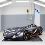 Suzuki Misano (lunghezza 4000 mm – larghezza 1750 mm – altezza 1000 mm – passo 2600 mm – interasse 1500 mm) è un veicolo sportivo e compatto, che rilegge in chiave sperimentale la tipologia classica della barchetta proponendo, con un layout innovativo e asimmetrico, due posti in tandem su quattro ruote. Tese alla ricerca di eleganza e purezza, le linee degli esterni disegnano superfici pulite che avvolgono morbidamente l’abitacolo a vista. L’assenza di capote rivela le posizioni di guida e passeggero che, decentrate, lasciano libera la porzione destra, consentendo l’inserimento del pacco batterie e di un bagagliaio in posizione laterale. L’ispirazione sportiva si ritrova non solo nel design grintoso del frontale, in cui le linee saettanti delle luci aumentano la riconoscibilità della vettura, e nell’aerodinamicità del posteriore che convoglia i flussi d’aria attraverso due mesh trapezoidali, ma soprattutto nell’esperienza di guida. Protetto esclusivamente da un piccolo parabrezza che ricorda un cupolino, l’utente alla guida controlla la vettura non con un volante, ma con una cloche di chiara ispirazione motociclistica.