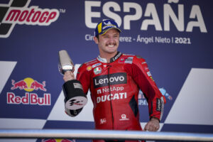 Partito con il terzo tempo, dalla prima fila, Miller si è portato subito al comando dopo la partenza, ma è poi stato superato da Quartararo al quarto giro scivolando al secondo posto. Il pilota del Ducati Lenovo Team ha comunque cercato di contenere il distacco dal pilota francese ed ha poi approfittato delle sue difficoltà verso metà gara, continuando a spingere fino a raggiungerlo e superarlo a dieci giri dalla fine. Miller ha così tagliato il traguardo al primo posto, regalando a Ducati il suo secondo successo a Jerez della Frontera dopo l’ultima vittoria ottenuta con Capirossi nel 2006 e ha aggiunto 25 punti alla sua classifica generale, che lo vede attualmente sesto. Ottima gara anche per Francesco Bagnaia, partito con il quarto tempo dalla seconda fila in griglia. Terzo al primo giro, il pilota italiano è poi scivolato alle spalle di Aleix Espargaro e Franco Morbidelli, ma grazie ad un ritmo costante è riuscito a riprendere entrambi e a superarli. Al 18esimo giro, Bagnaia ha infine passato anche Quartararo, portandosi alle spalle di Jack Miller ed ha chiuso il GP in seconda posizione, a meno di due secondi dal compagno di squadra. Grazie al risultato, Pecco conquista il comando della classifica generale piloti, con un punto di vantaggio su Quartararo, mentre Ducati e il Ducati Team occupano la seconda posizione rispettivamente nella classifica costruttori e in quella per le squadre.