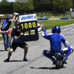 A 62 anni il giornalista Valerio Boni vince la sfida del Guinness World Records in sella a una minimoto e decide di triplicare il record. Per 24 ore ha sfidato le insidie del meteo e una posizione di guida non convenzionale, coprendo la distanza di 751, 488 km più o meno quella compresa tra Milano e Napoli. Il precedente record era di 250 km. Dalle ore 17.30 di mercoledì 11 maggio è cominciato l’iter per ottenere l’omologazione di uno degli oltre 53.000 primati raccolti nel celebre Guinness World Records. Quello ottenuto dal giornalista Valerio Boni sulla pista 7Laghikart di Castelletto di Branduzzo non è la più folle in assoluto, ma entra di diritto tra le più curiose. Percorrendo 1.236 giri, per un totale di 751,488 km, in sella a una Polini 910 ha fissato il nuovo limite per la categoria minimoto sulla distanza delle 24 ore, polverizzando quello precedente di 250 km.