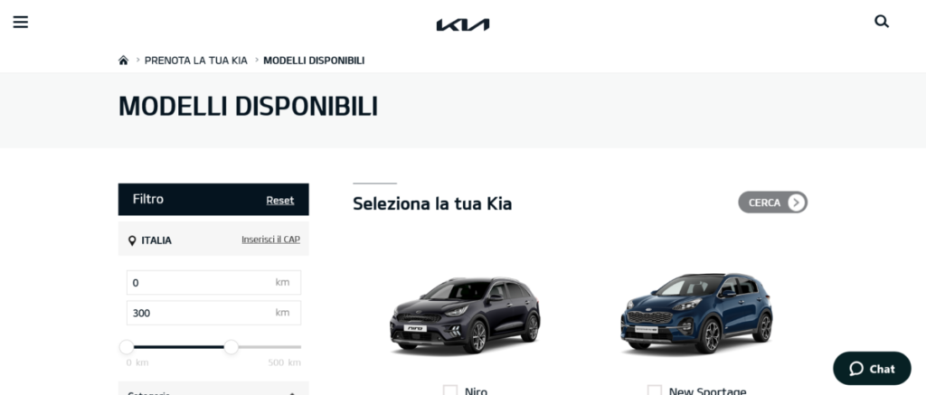 di online reservation sul proprio sito internet. La novità consiste in una vera e propria vetrina online di autovetture Kia ritirabili presso la rete dei concessionari, ma prenotabili direttamente dal sito internet senza uscire di casa. Dopo essersi registrati sul sito www.kia.com e aver scelto la vettura che corrisponde alle proprie necessità, si effettua una vera e propria prenotazione online che blocca la vettura per due giorni. A questo punto il potenziale cliente che ha effettuato la prenotazione ha tutto il tempo per recarsi in concessionaria, visionare il preventivo completo e decidere se finalizzare l’acquisto. La prenotazione consente di beneficiare di vantaggi dedicati esclusivamente ai veicoli disponibili online che, al momento della consultazione, variano di modello in modello.