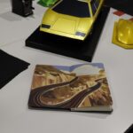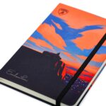 La collaborazione con Automobili Lamborghini e Moleskine nasce da un’attenta valutazione nella scelta dell’idea grafica, con lo scopo di restare coerenti ai valori dei marchi sia per capacità evocativa delle opere sia per il prestigio a livello internazionale. La mano grafica di Emiliano Ponzi rispecchia esattamente queste caratteristiche. La narrazione che l’artista ha voluto esprimere ci racconta di un viaggio con la vettura Lamborghini, che nasce da un contesto urbano, si snoda attraverso un percorso sinuoso in un contesto naturalistico ed ha come culmine e punto di arrivo il picco al tramonto con l’illustrazione che vediamo in copertina.