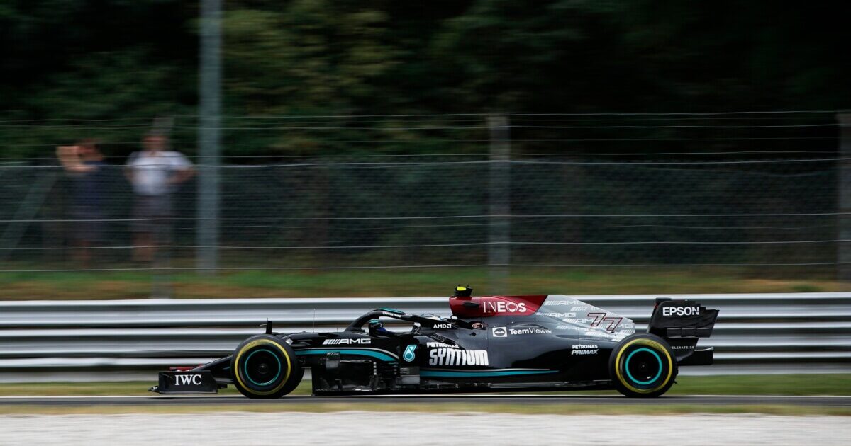 Bottas, Hamilton e Verstappen nelle qualifiche a Monza. Ferrari 7° e 8°