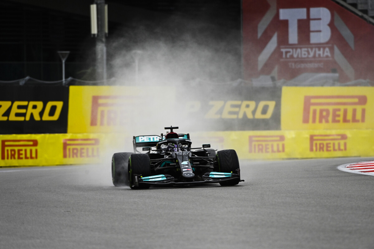 della classifica di campionato. Come quasi tutti i piloti, Hamilton ha optato per una strategia a due soste, passando da P Zero Yellow medium C4 a P Zero White hard C3 al 27° giro e poi a Cinturato Green Intermediate per compiere gli ultimi giri sotto la pioggia. Il britannico della Mercedes ha dato la caccia a Lando Norris (McLaren), che partito dalla pole è rimasto in testa per quasi tutta la gara ma ha poi montato le intermedie solo nell’ultimo giro perdendo posizioni e classificandosi settimo. Max Verstappen (Red Bull) è passato dal 20° piazzamento in griglia al secondo posto in classifica, partendo con pneumatici hard prima di passare alle medium e poi alle intermedie a tre giri dalla fine. La maggior parte dei piloti ha preso il via con pneumatici medium, in sette hanno optato per la hard. Prima della pioggia, tutti i piloti stavano seguendo le due strategie teoricamente più veloci: da medium a hard o da hard a medium.