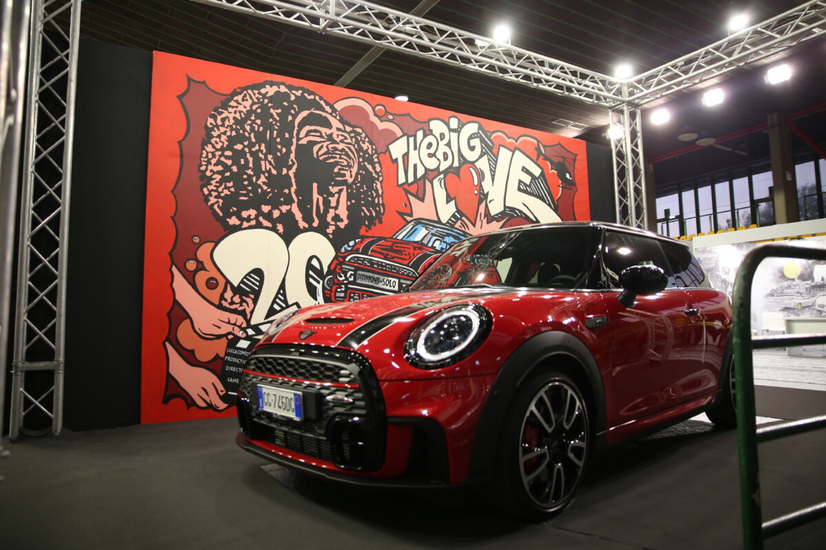 Si intitola “THE BIG LOVE”, l’installazione esposta presso il Palazzetto dello Sport, Lucca e che ha visto protagonista la MINI John Cooper Works, una vettura dall’animo sportivo e accattivante sinonimo del tradizionale spirito sportivo del marchio MINI, che come in una gara sfreccia su pista a tutta velocità saltando attraverso un enorme cuore creato da due mani, rendendo omaggio a coloro che in questi 20 anni hanno contribuito a fare di MINI un punto di riferimento nel nostro Paese e non solo. Inoltre, il volto della ragazza raffigurata richiama il claim BIG LOVE – We’re different but pretty good together. Una presa di posizione che per MINI significa essere tutti insieme, uniti verso un unico obiettivo: un “grande amore”. BIG LOVE, infatti, è il modo in cui MINI vede il mondo. Una “way of life” che trova nella diversità una ricchezza, celebrandone la bellezza.