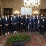 Dopo l’arrivo dei piloti presso la sede FMI e il trasferimento al Quirinale, la Cerimonia si è svolta nel pomeriggio dell’8 dicembre, a partire dalle 17.30, all’interno della Sala del Brustolon. Dopo l’introduzione del Presidente Malagò e l’intervento del Presidente Copioli, il Presidente Mattarella si è rivolto ai presenti con grande apprezzamento per i prestigiosi risultati ottenuti. Nel corso dell’incontro il Capo dello Stato ha sottolineato il meritorio lavoro svolto dalla FMI – i cui riscontri sono costantemente molto positivi sia nell’ambito sportivo che nella promozione della cultura motociclistica – e ha celebrato le carriere di Antonio Cairoli e Valentino Rossi, sottolineando come le loro imprese abbiano dato forte risalto nel mondo a tutto lo sport italiano. Inoltre ha rivolto le più sentite congratulazioni ai presenti per i titoli iridati conquistati nel 2021. Il Presidente Mattarella ha dimostrato passione e interesse, ricordando quanto il motociclismo sia uno sport con un passato ricco di storia, un presente entusiasmante e un futuro che promette grandi soddisfazioni grazie ai giovani piloti.